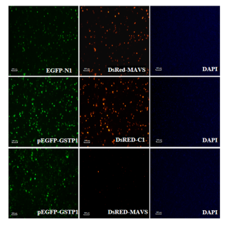 AEGPF-3nGSTP1抑制DsRed-3nMAVS蛋白的表达