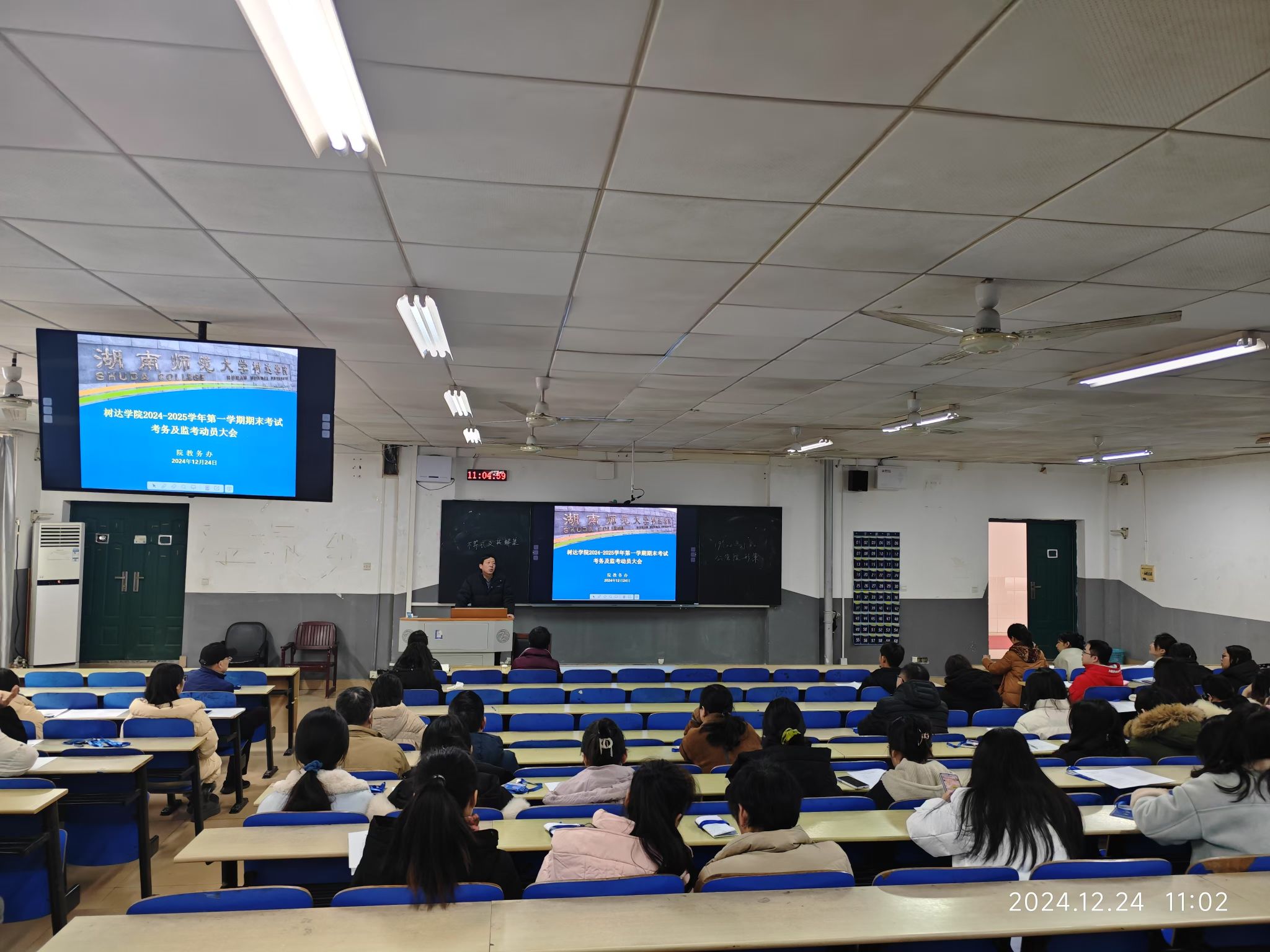 (供稿 院教务办)12月24日,学院2024 - 2025学年第一学期期末考试监考培训会议在树达楼115教室召开。党委书记李正益、纪检书记朱映红、副院长梁蓓蓓出席会议。