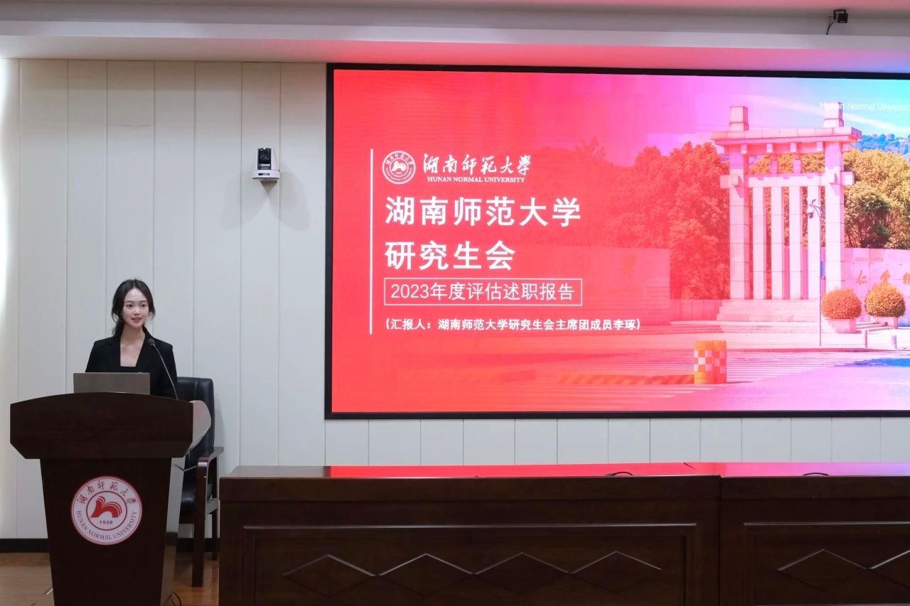 为深入学习贯彻习近平新时代中国特色社会主义思想和党的二十大精神,认真贯彻落实习近平总书记关于青年工作的重要思想,强化我校研究生会、各学院研究生分会组织自身建设,提升我校研究生会、各学院研究生分会履职能力,3月21日下午,2023年湖南师范大学研究生会、各学院研究生分会年度述职会在中和楼旅游学院234报告厅举行。校团委书记陈天嵩、党委办公室副主任周旺蛟、党委组织部副部长陈一诚、校长办公室副主任张义、研究生院党委书记龚舒、研究生院党委副书记苏涵琼出席会议,校研究生会、校研究生团委全体干部,各学院研究生会、各学院研究生团委干部代表参加会议。