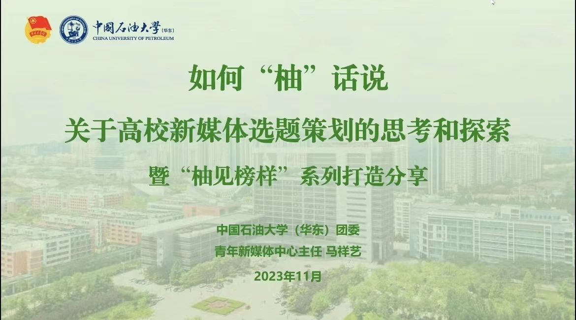 马祥艺依托自身在校园新媒体工作中的丰富经验,以“关于高校新媒体选题策划的探索与思考暨‘柚见榜样’系列打造分享”为主题进行了知识分享。他从新媒体文稿的选题动机、选题方式、选题意义、创作工具及人物通讯稿撰写等多个维度,进行了深入而专业的讲解,为所有参会人员带来了一场知识盛宴,使大家收获颇丰。谈到自身的工作体会,他说到,作为校园新媒体工作者,我们应当引领青年思想、凝聚青年力量、服务青年发展,以青春之名,发青春之声。