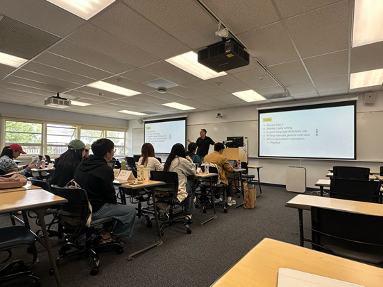在接下来的一周时间里,同学们积极参与项目的翻译及英语语言技能强化培训课程,主要培训课程包括:英汉翻译、视译英译汉、视译汉译英、英语学术写作与编辑、美国文化等课程。课程既注重英汉双向翻译技能的实战训练,又强化学术英语写作规范,同时融入跨文化交际元素,全面提升学员的语言应用能力和专业素养。其中,英汉翻译课程特别融入了人工智能翻译工具的应用教学,通过对比分析机器翻译与人工翻译的特点,帮助同学们掌握如何有效利用人工智能技术提升翻译效率与质量。课堂上师生互动频繁,讨论氛围热烈,充分展现了我校研究生过硬的语言能力、创新的思维方式以及严谨的治学态度,获得了任课教师的一致好评。课后作业的完成质量同样令人印象深刻,多位教师特别称赞了同学们展现出的学术潜力和钻研精神。