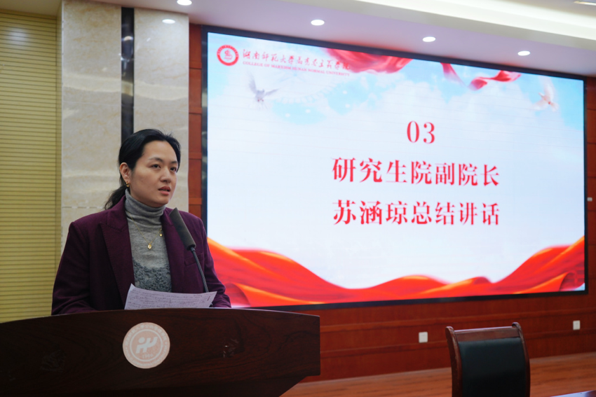 (通讯员 欧阳娴 李欣 喻锦璐)1月15日下午,湖南师范大学第七届博士研究生思想政治理论课社会调研成果展示竞赛决赛在博后楼四楼报告厅举行,校研究生院副院长苏涵琼、马克思主义学院党委书记李泳波、马克思主义学院副院长陈德祥、马克思主义学院教授刘先江、马克思主义学院教授刘晓玲、马克思主义学院研究生思政课教研部主任徐新等出席活动并担任评审专家,马克思主义学院科研办主任、研究生辅导员周律老师主持会议。