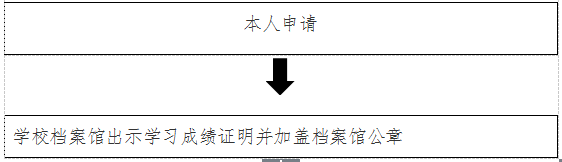 本人申请→学校档案馆出示学习成绩证明并加盖档案馆公章。