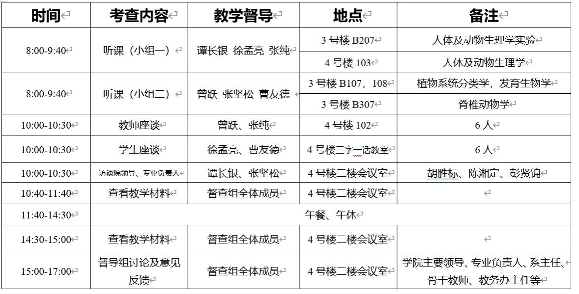 校教学督导委员会主任委员、全体副主任委员及第五组全体成员,生命科学学院党委书记、执行院长、教学副院长、教务办主任及相关工作人员参与了本次督查工作。