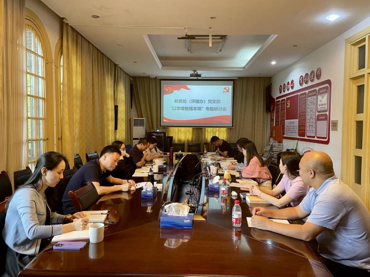 5月25日,教务处(评建办)党支部在教务处二楼会议室召开学习贯彻习近平新时代中国特色社会主义思想主题教育(以下简称“主题教育”)专题党课暨“以学增智强本领”专题研讨会。会议由党支部书记罗明主持。
