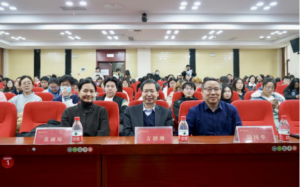 12月4日下午,由湖南师范大学研究生院主办,校研究生团委、研究生会承办的我校第二十四届研究生“麓山论坛”学术讲座在中和楼129报告厅举行。中国科学院地理科学与资源研究所二级研究员,国际欧亚科学院院士,中国地理学会会士,国家万人计划领军人才,教育部长江学者特聘教授方创琳带来题为“中国式现代化建设与城乡融合发展”的讲座。湖南师范大学地理科学学院院长周国华、研究生院党委副书记苏涵琼等领导出席本次讲座,我校近两百名研究生参加了讲座。讲座由我校研究生团委研究生会成员罗嘉怡主持。