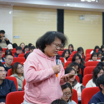 在提问交流环节,参会同学都踊跃提问。针对城乡融合发展中如何缩小城乡人才差距的问题,方创琳指出乡村振兴的关键是高素质的劳动力,他鼓励青年人为乡村振兴贡献自己的一份力量。针对同学们提到的“新质生产力”、“城乡信息化”与“农业现代化”,方创琳以其深厚的学术底蕴,借由实际事例,引出“智慧农业,知识乡村”的重要理念,为提问同学一一答疑解惑。