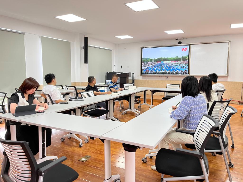 6月10日上午,招生与就业指导处党支部组织党员在507室集中收看了《“牢记嘱托 勇毅前进”——2022年高校党组织示范微党课第一讲》。